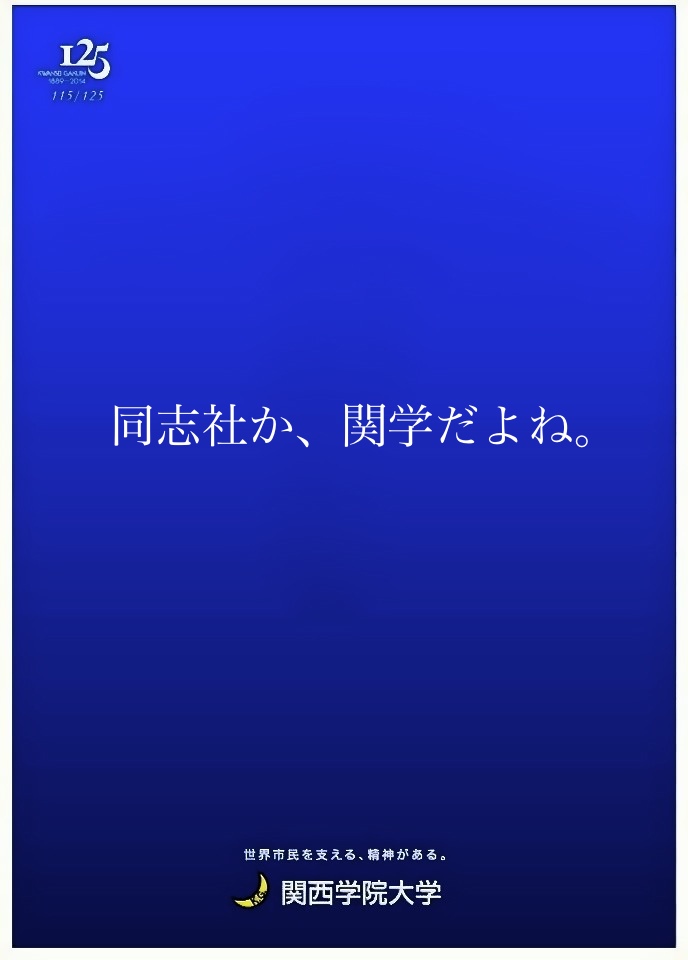 私は関西学院大学は素晴らしい愛すべき大学であると思いますが、関西学院大学の広告は愛せません。どうかと思う。
